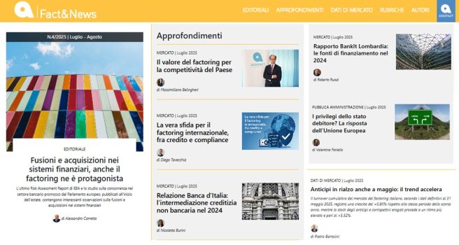 - Fusioni e acquisizioni nei sistemi finanziari, anche il factoring ne è protagonista | L’Editoriale di Alessandro Carretta, Assifact